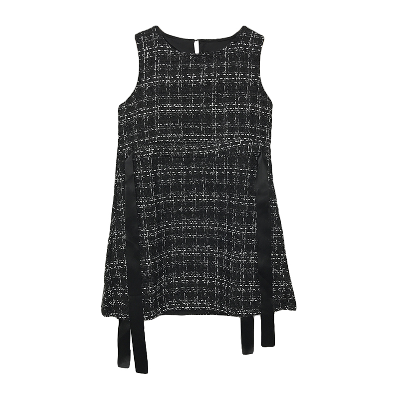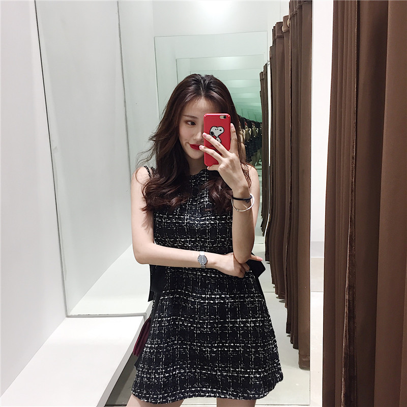 / 秋裝女2018新款潮流休閑百搭顯瘦慵懶薄花呢極簡主義小香風連衣裙