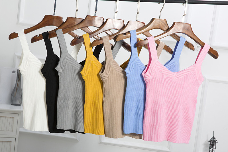 女裝彈力顯瘦吊帶小背心百搭短款外穿針織上衣修身露背無袖打底衫