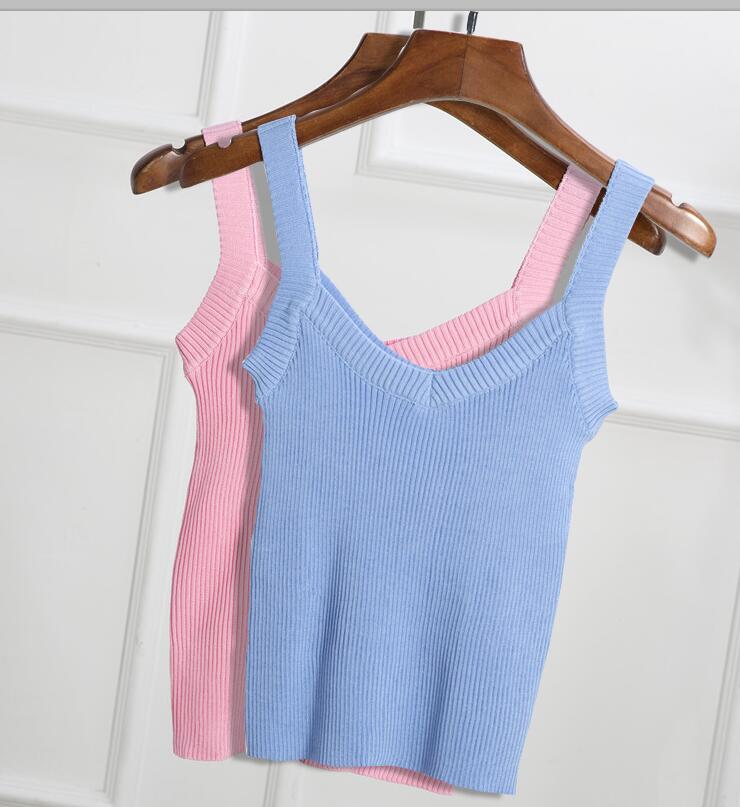 夏季新款 韓版吊帶V領顯瘦修身彈力打底衫女裝短款百搭針織背心潮