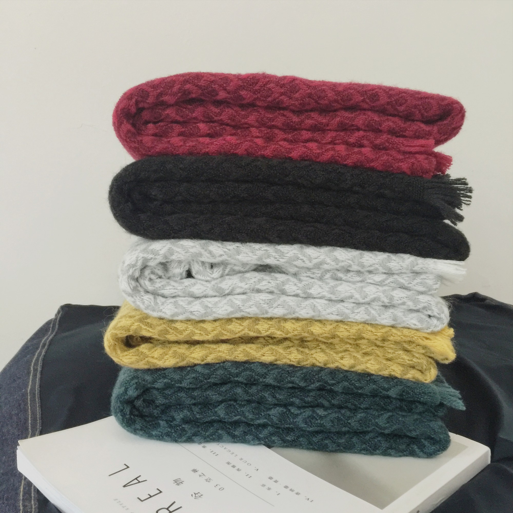秋冬百搭提花保暖針織圍脖毛線長款流蘇圍巾披肩女學生情侶款