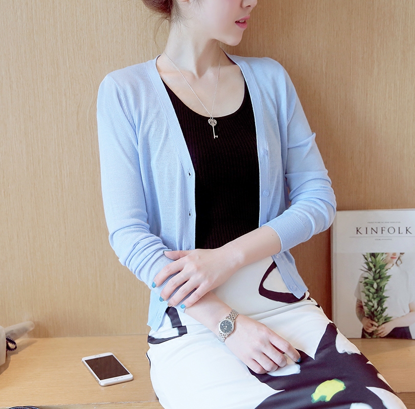/ 針織衫女開衫夏季短款外搭防曬衣女長袖百搭針織外套女薄款空調衫