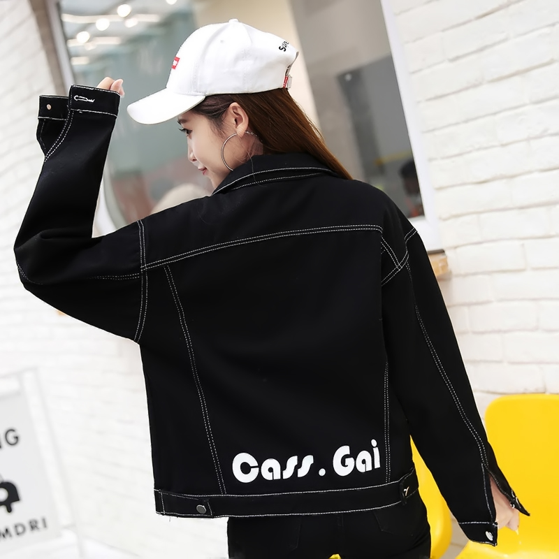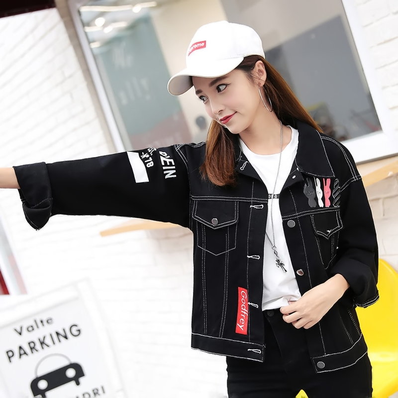 2017秋裝學院風寬松短款百搭bf原宿風牛仔外套女春秋韓版學生潮
