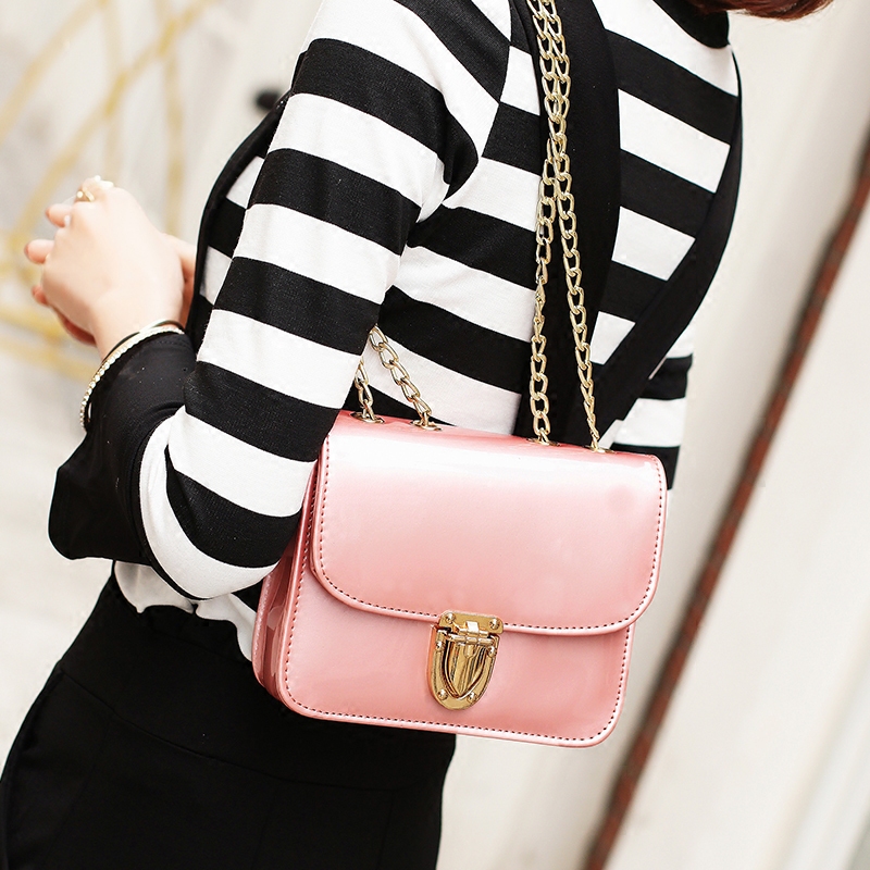 / 包包女新款潮漆皮鏈條小方包韓版單肩女包小包百搭斜挎果凍包