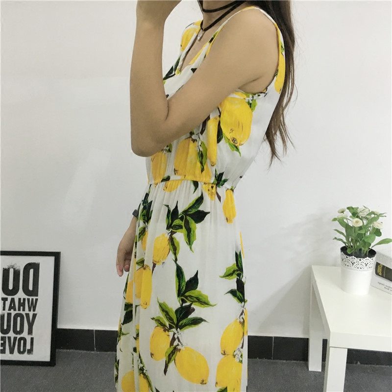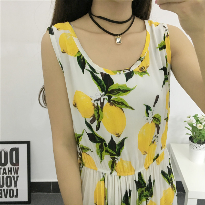 / 2017新款波西米亞長裙無袖棉綢大擺連衣裙夏季女裝度假沙灘裙長裙