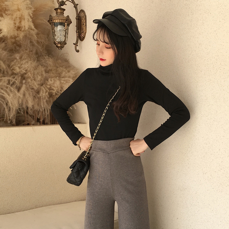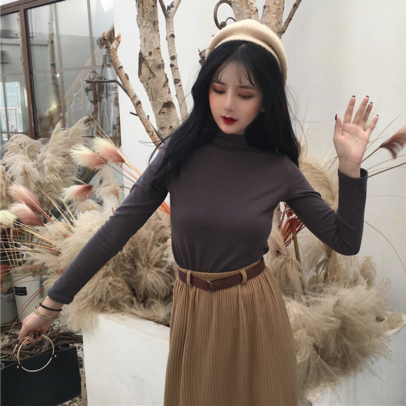 秋冬女裝2018新款韓版純色半高領打底衫學生修身顯瘦長袖T恤上衣