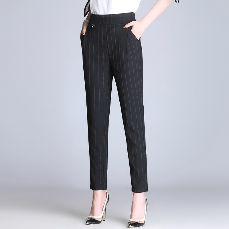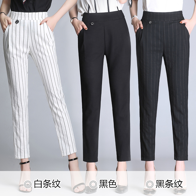 條紋哈倫褲女九分褲春夏西裝褲顯瘦寬松小腳褲高腰休閑長褲薄款夏