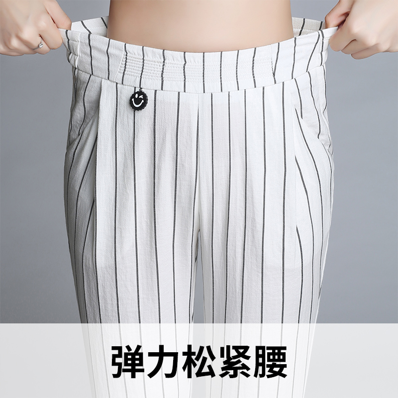 / 條紋哈倫褲女九分褲春夏西裝褲顯瘦寬松小腳褲高腰休閑長褲薄款夏