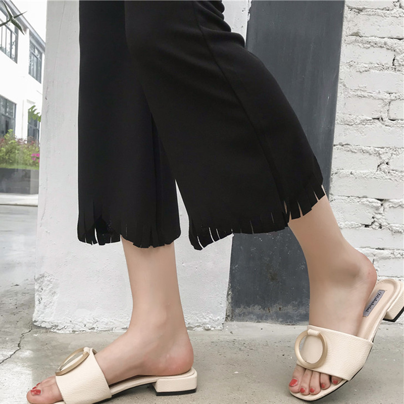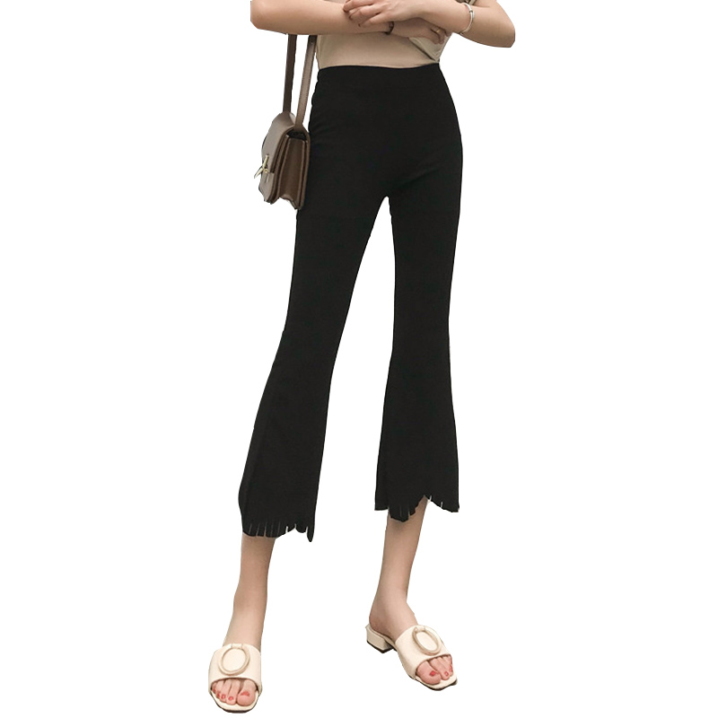 / 休閑褲女夏2018新款韓版女裝學生百搭純色高腰顯瘦顯腿長微喇叭褲