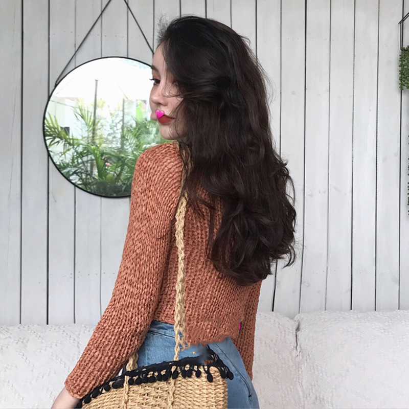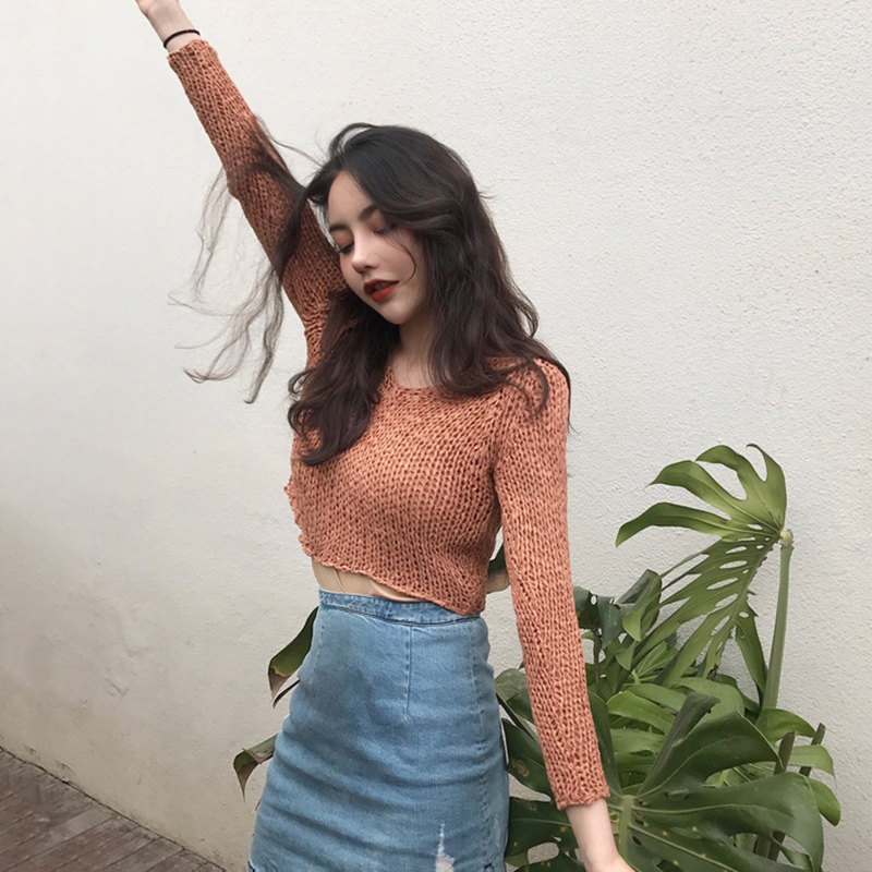 / 港味復古短款修身針織衫女秋裝薄毛衣長袖V領上衣2018新款打底衫