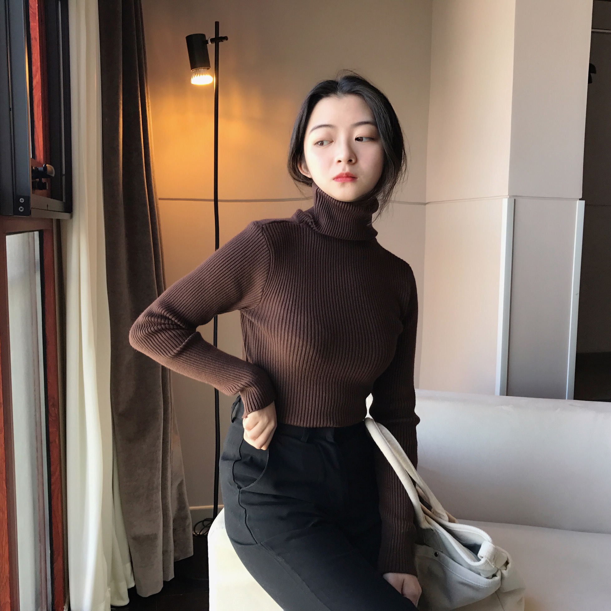 / 港味慵懶風套頭毛衣女2018新款秋冬純色高領加厚打底針織衫上衣潮