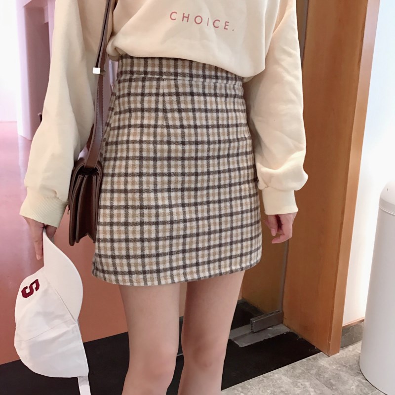 / 高腰裙子韓版百搭短裙時尚chic冬季新款毛呢顯瘦半身裙A字裙女潮