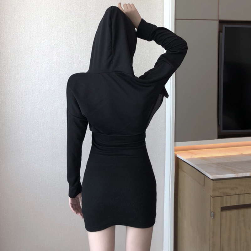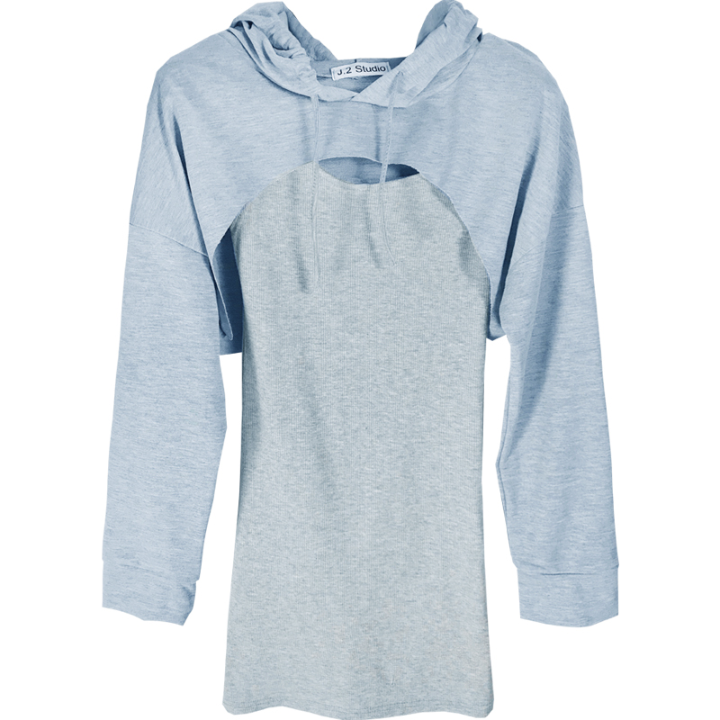 秋裝2018新款女裝學生氣質修身包臀背心裙+長袖連帽短款罩衫套裝