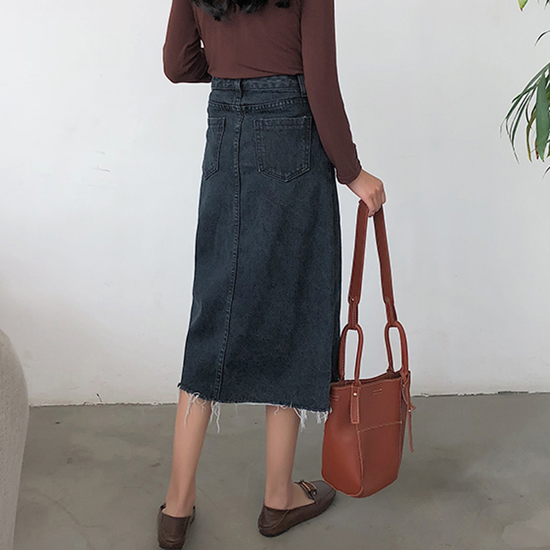 / 秋裝女2018新款復古港風高腰開叉牛仔半身裙學生中長A字包臀裙子