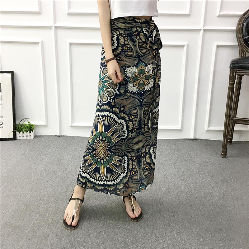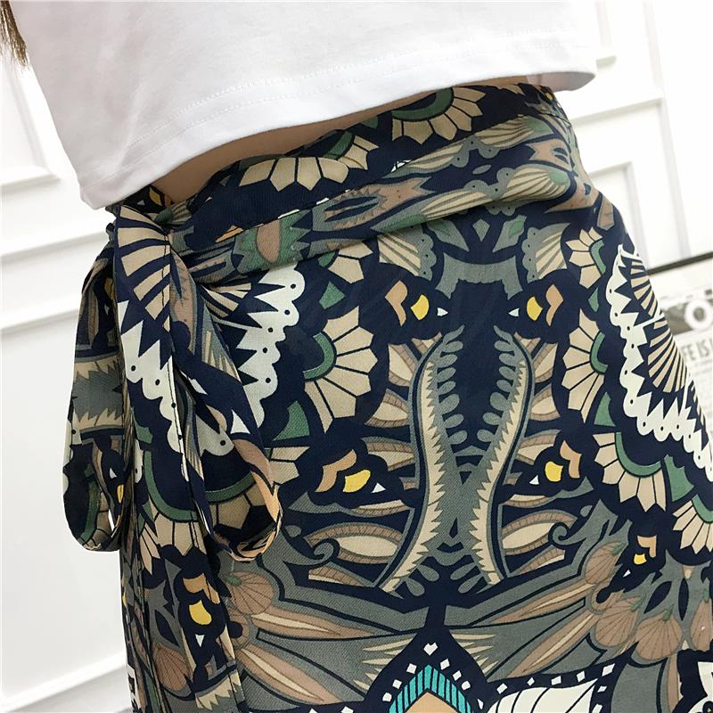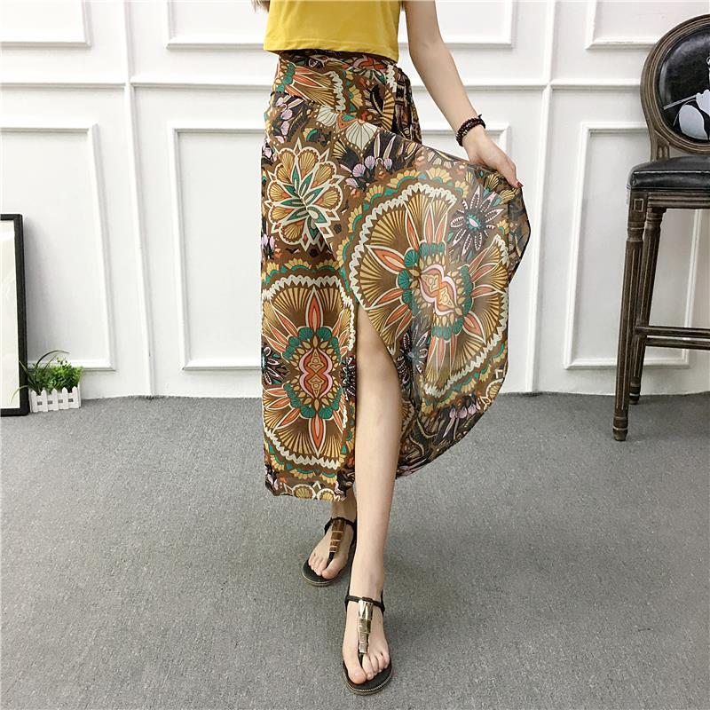 / 波西米亞一片式半身裙中長款系帶裙子雪紡沙灘裙碎花開叉長裙女夏