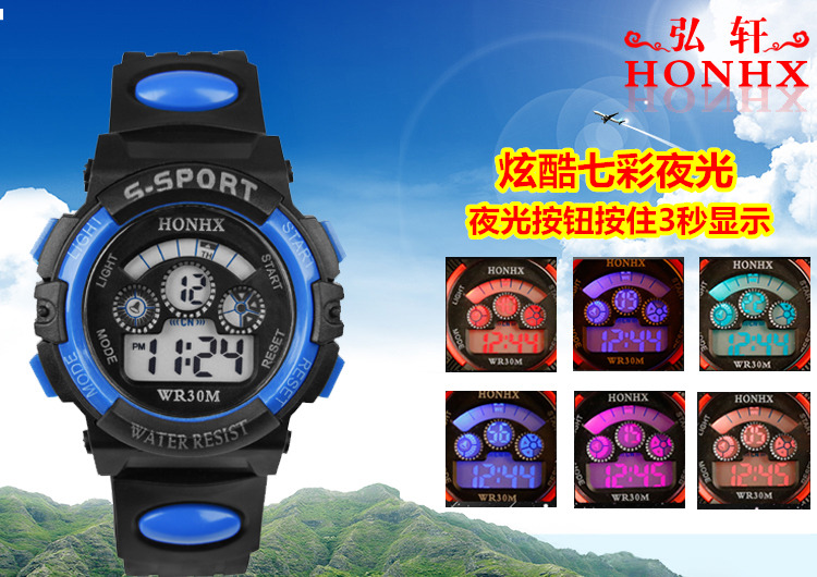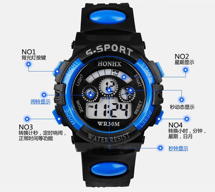 電子表男學生運動戶外多功能防水數字式腕表簡約兒童手表男孩女孩