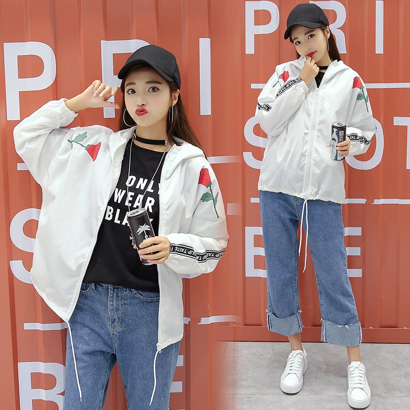 / 2017秋裝新款玫瑰印花寬松BF風連帽夾克外套百搭學生長袖棒球服女