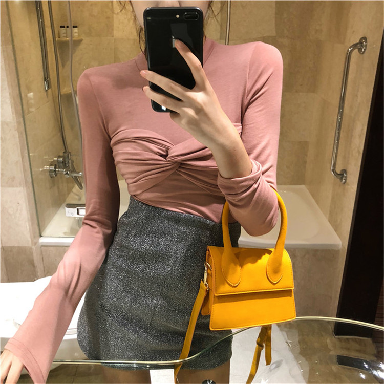 秋季女套裝韓版修身長袖套頭抹胸打底衫+亮晶晶半身裙A字裙分開拍