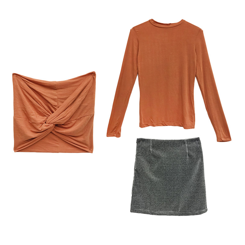 / 秋季女套裝韓版修身長袖套頭抹胸打底衫+亮晶晶半身裙A字裙分開拍