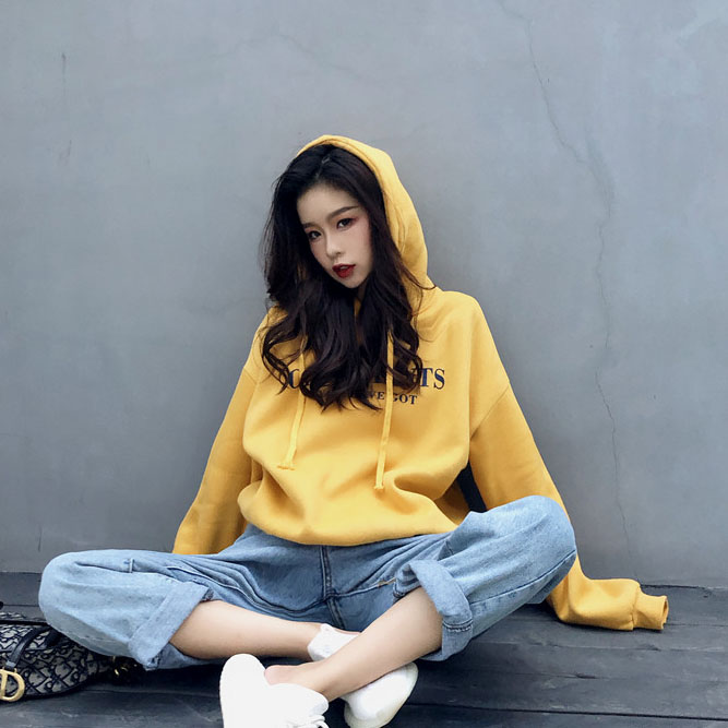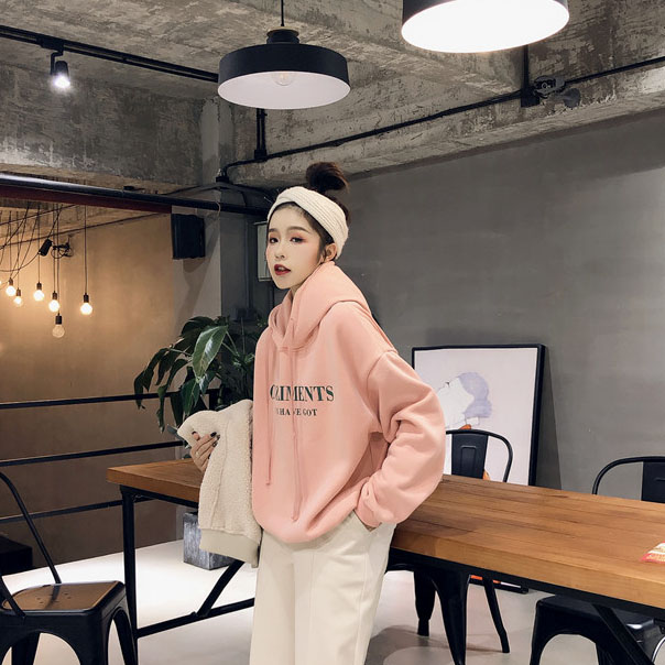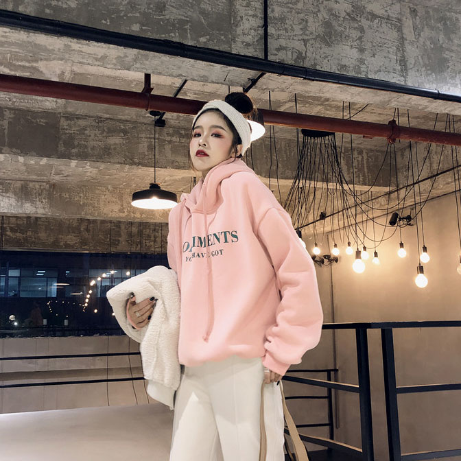 / 韓版pp home衛衣女2018新款港風加絨加厚慵懶印花字母連帽外套潮
