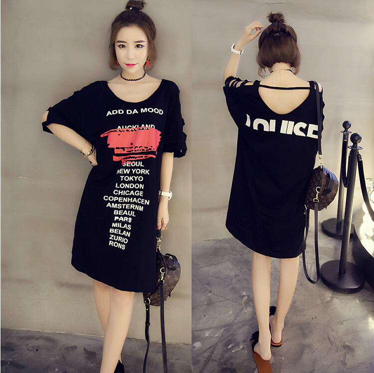 胖MM夏新款短袖T恤女寬松顯瘦中長款打底衫加肥加大碼連衣裙200斤