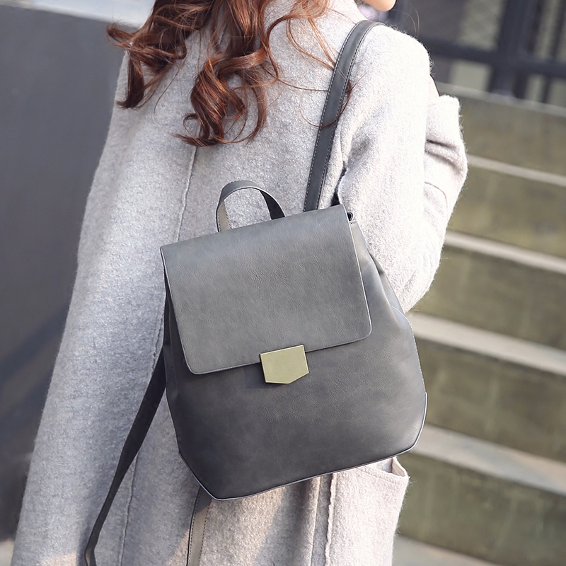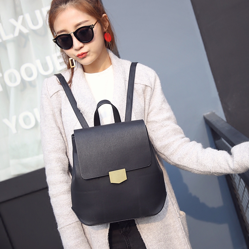 新款日韓版學院風PU雙肩包女簡約百搭旅行背包休閑學生書包潮