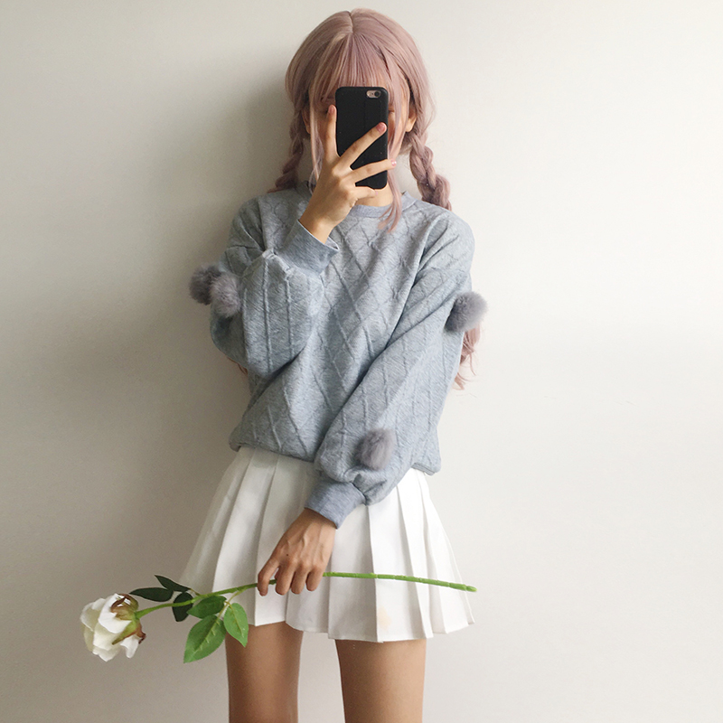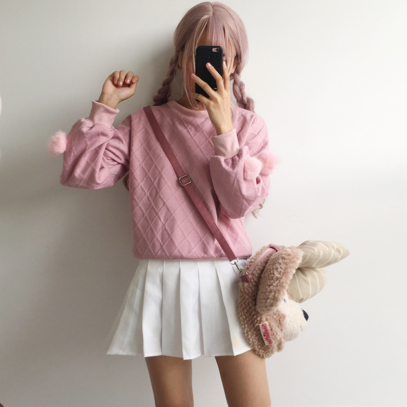 秋冬女裝2018新款韓版毛球寬松衛衣學生休閑長袖外套時尚白色上衣