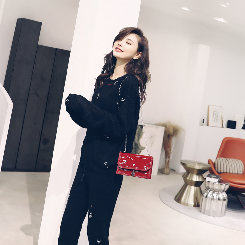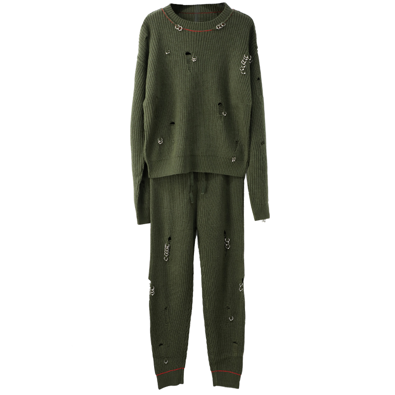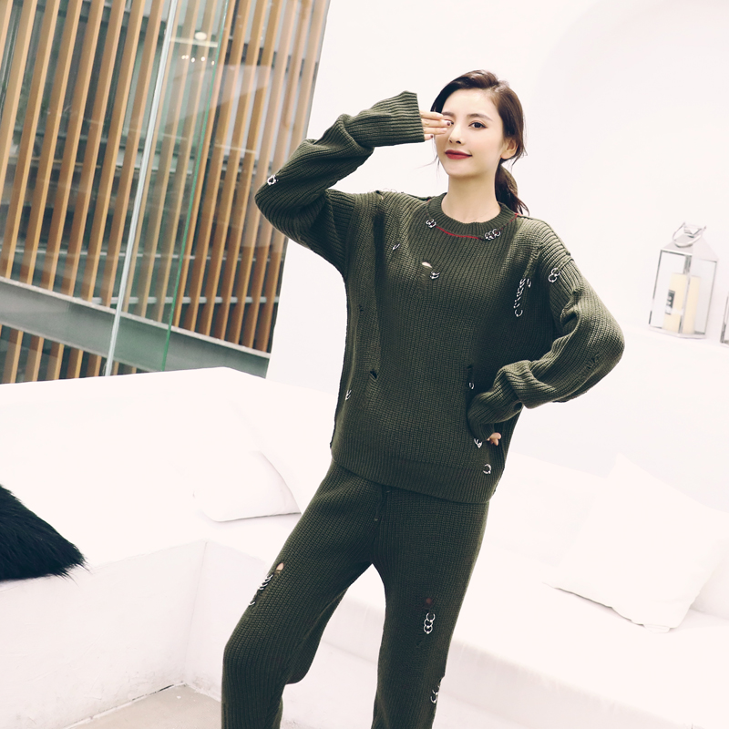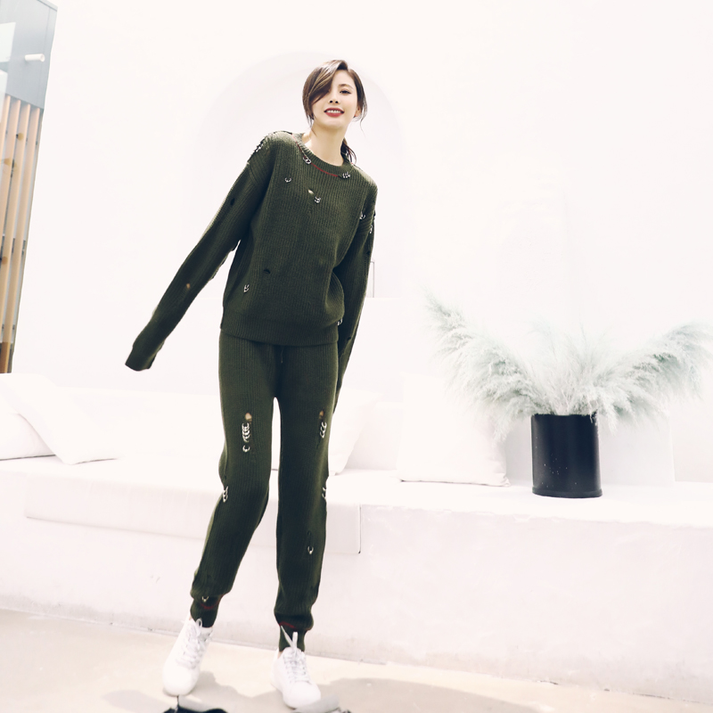 / 名媛淑女氣質2018秋季新款針織破洞休閑兩件套毛衣時尚網紅套裝潮