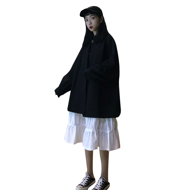 / 2018新款秋冬韓版中長款小翻領毛呢外套赫本風呢子大衣女+半身裙