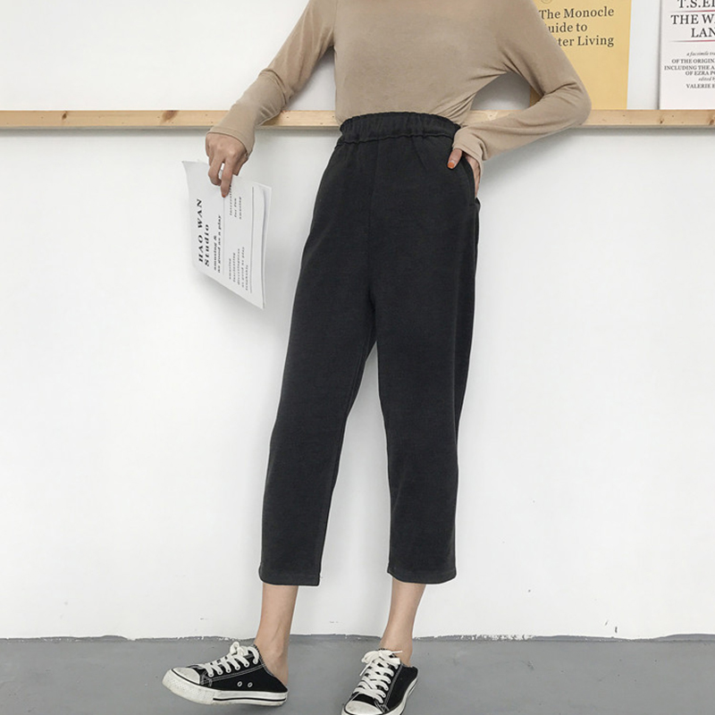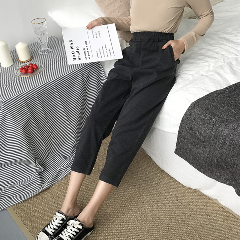 秋裝女2018新款高腰顯瘦毛呢休閑褲九分西裝褲學生寬松純色直筒褲