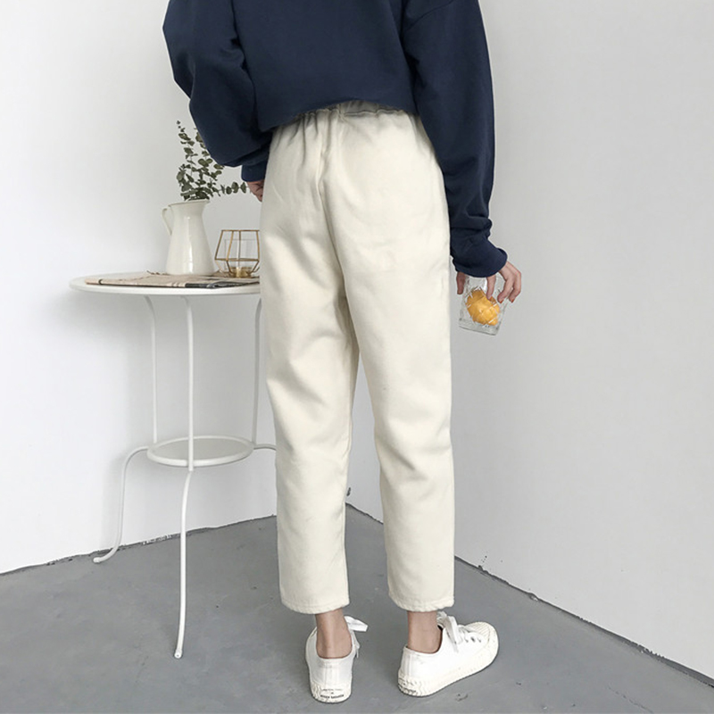 / 秋裝女2018新款高腰顯瘦毛呢休閑褲九分西裝褲學生寬松純色直筒褲