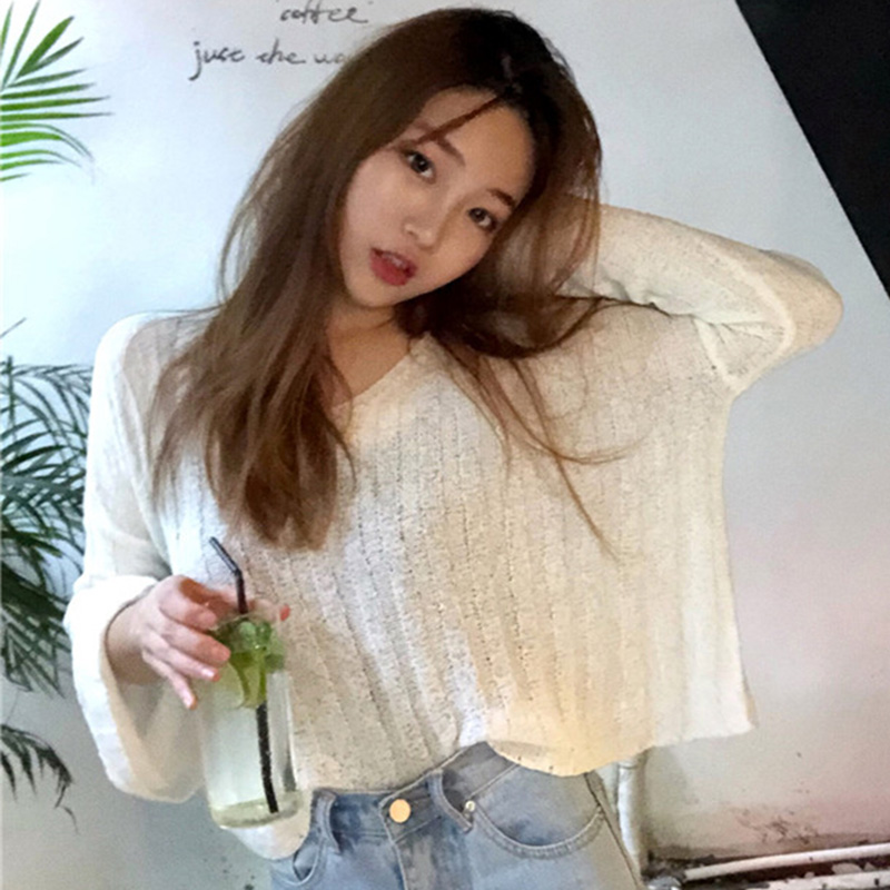 / 針織衫女2018秋裝新款韓版學生喇叭長袖短上衣時尚寬松防曬薄罩衫