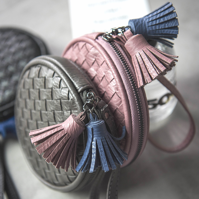 新款韓版迷你手拿零錢包女圓形編織流蘇鑰匙小包時尚硬幣包錢包潮