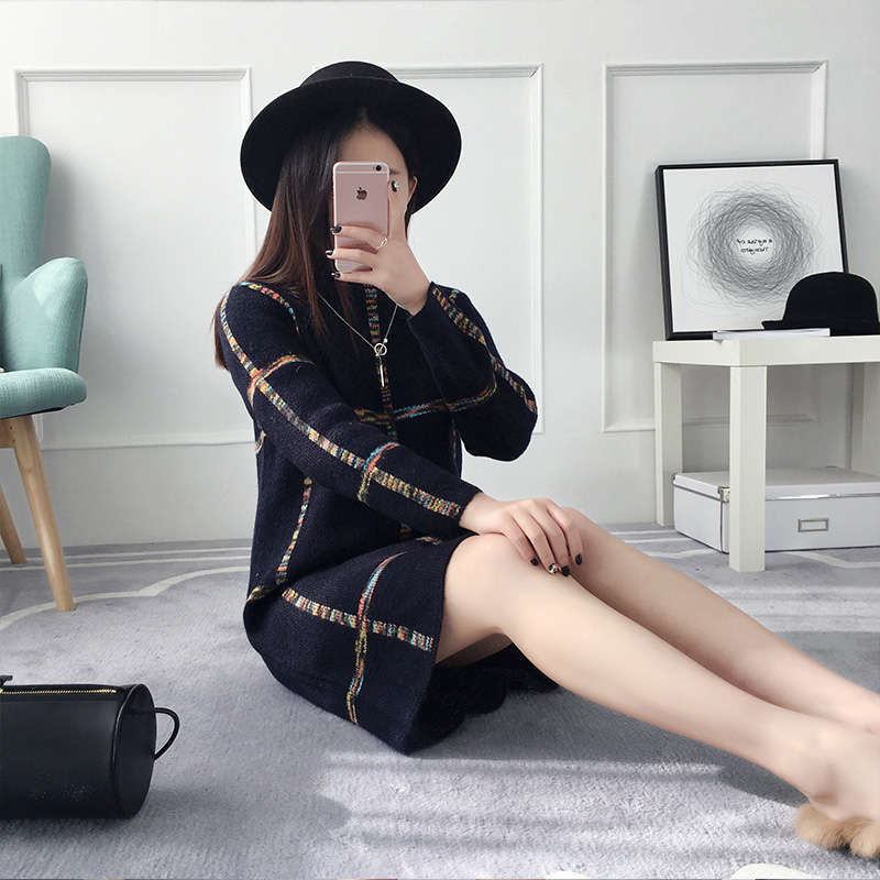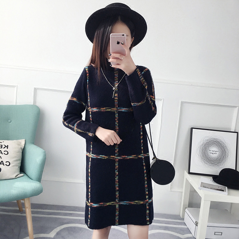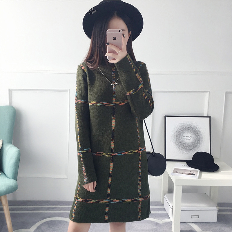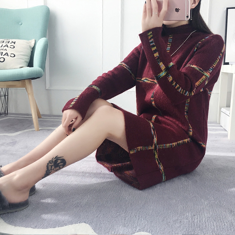 / 半高領套頭毛衣女秋冬裝韓版寬松中長款針織衫長袖女裝新款潮