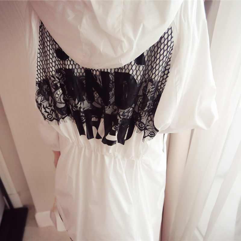拼蕾絲,字母印花,有內襯,內松緊抽繩