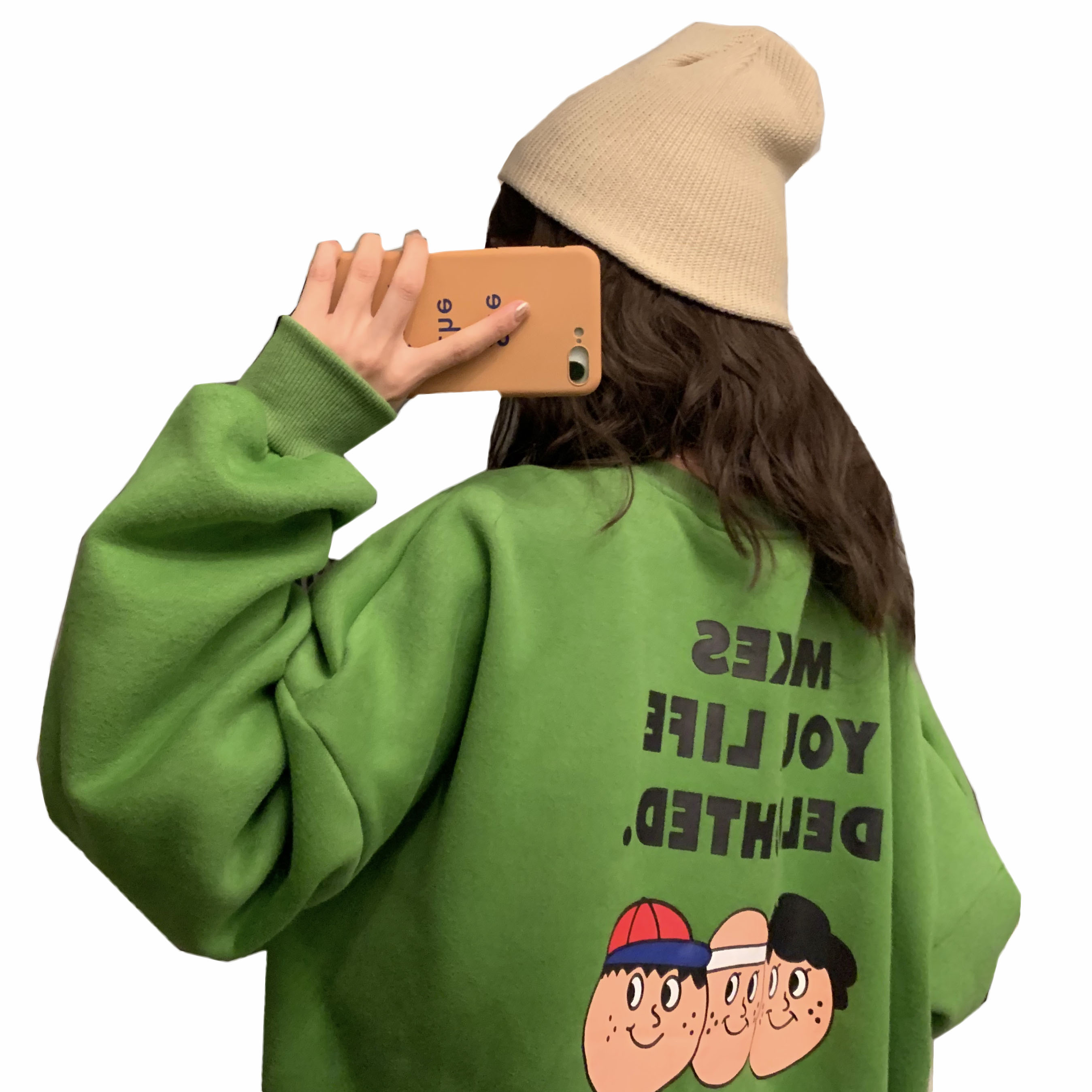 韓版港味秋冬2018新款簡約寬松百搭前后插畫印花加絨加厚衛衣女潮