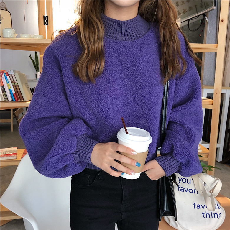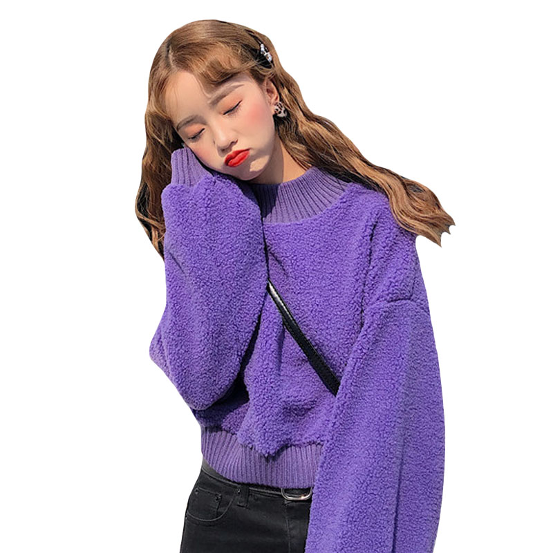 秋冬韓版復古慵懶風寬松仿羊羔毛加厚短款超火套頭衛衣上衣外套女