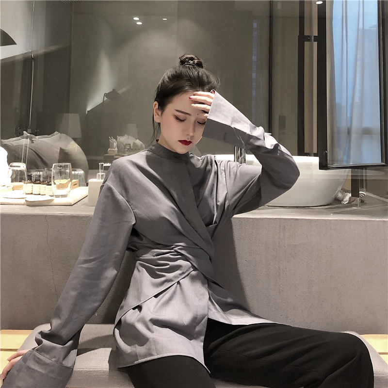 襯衣女2018新款寬松chic早秋韓版顯瘦百搭時髦慵懶風長袖上衣襯衫