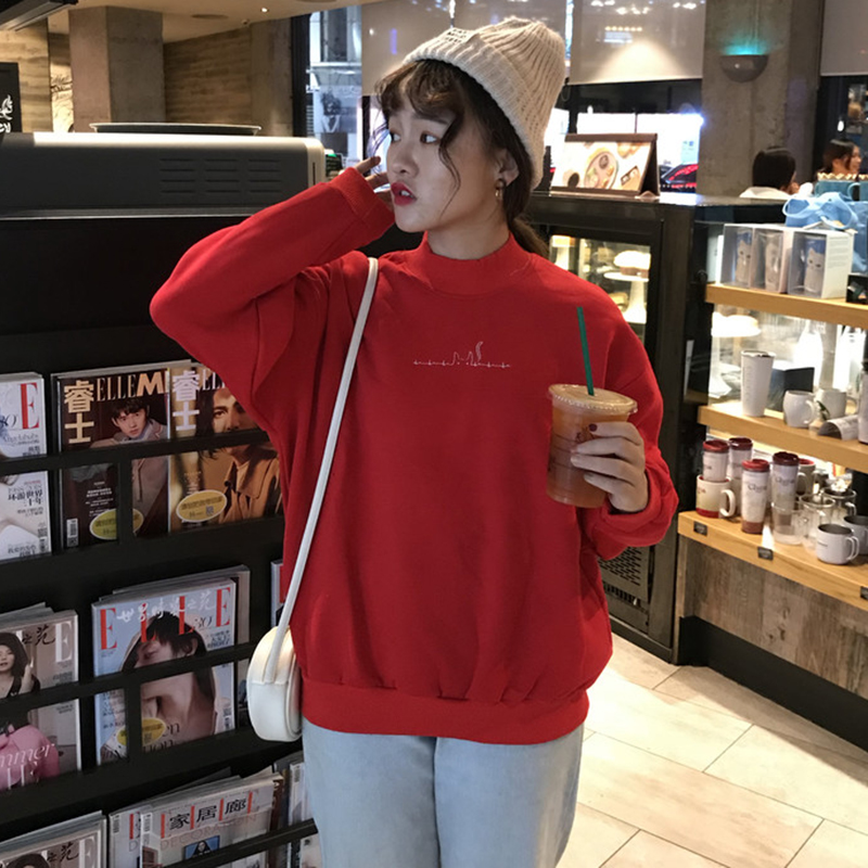 pp home長袖加絨衛衣女秋冬裝2018新款韓版學生寬松字母刺繡外套