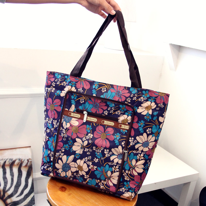 / 拉鏈購物袋折疊便攜手提袋加厚防水環保袋單肩花色尼龍包女收納袋
