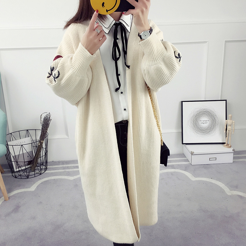 / 春裝外套新款春秋韓版針織刺繡毛衣女中長款學生寬松百搭開衫