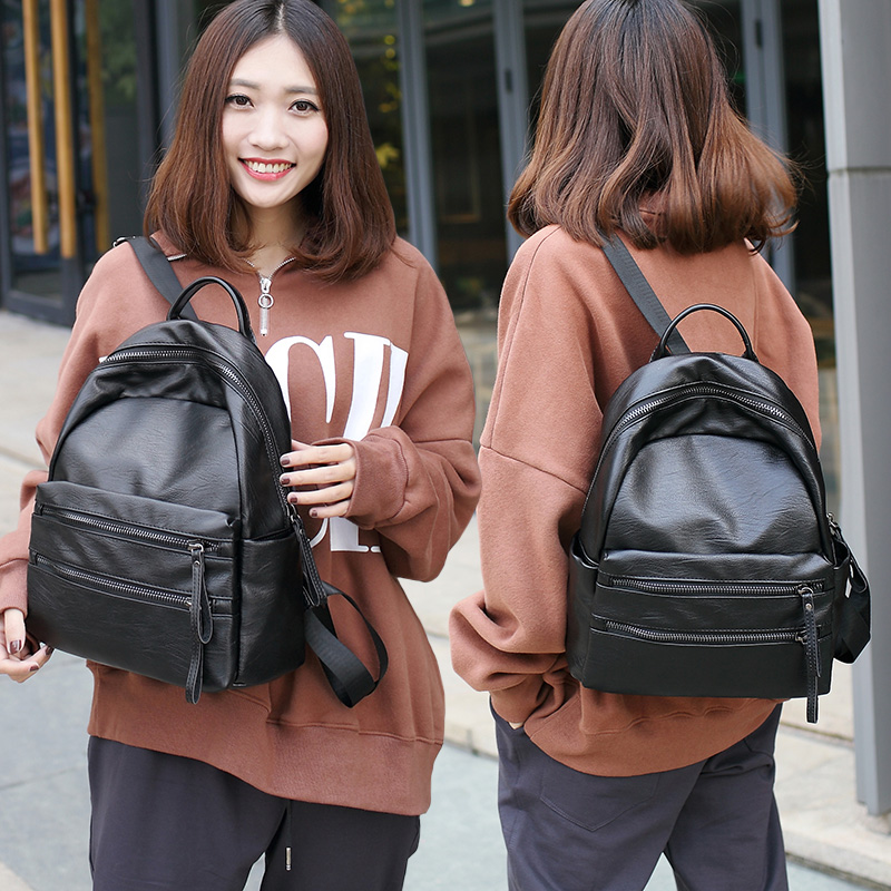 雙肩包女韓版pu時尚個性百搭學院風雙拉鏈女士包包新款潮背包