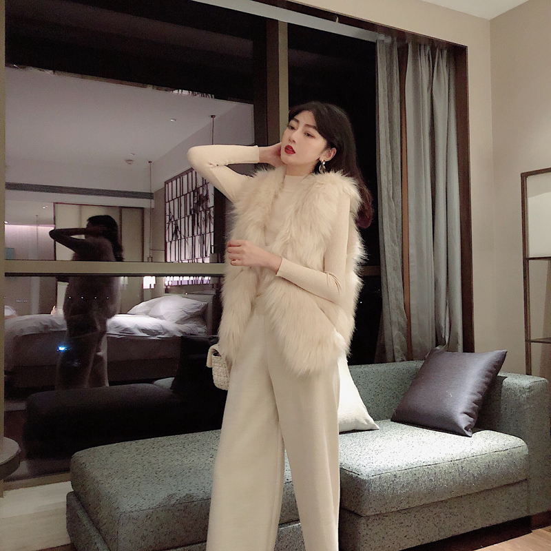 新款氣質名媛毛毛馬甲休閑呢子闊腿褲港風氣質時尚套裝chic兩件套