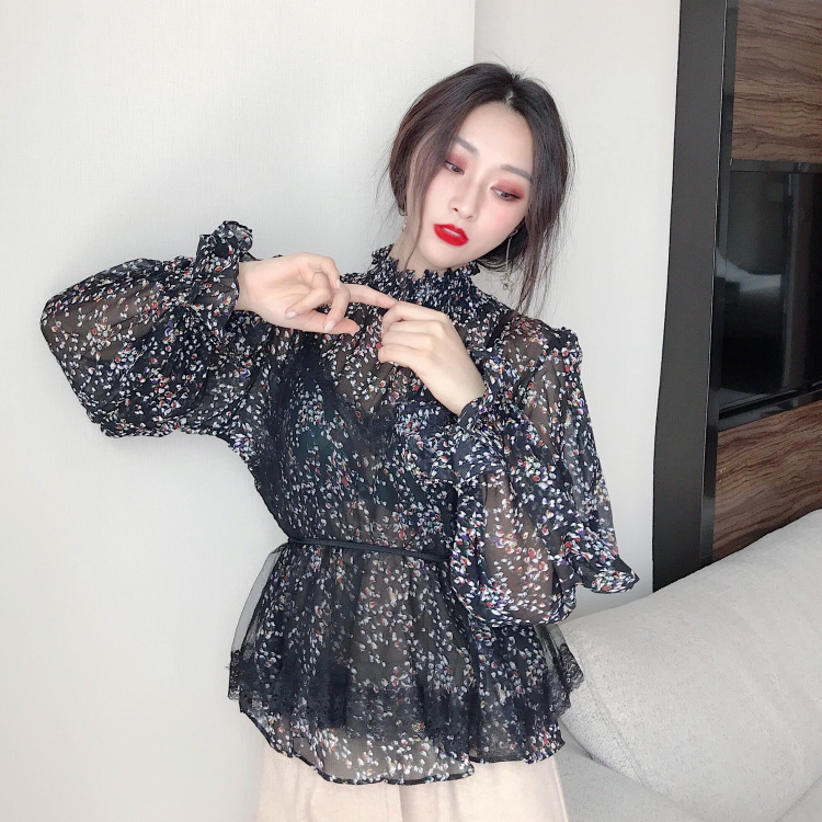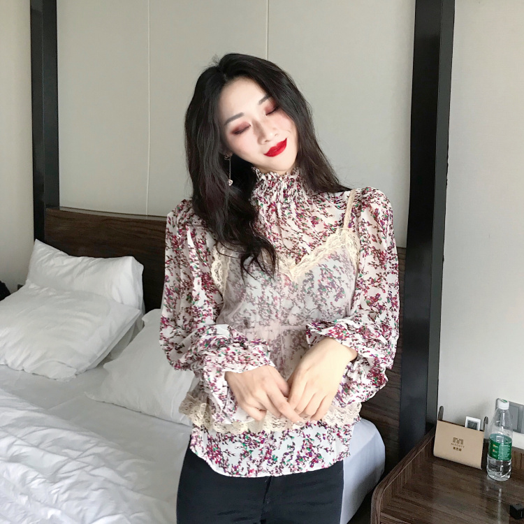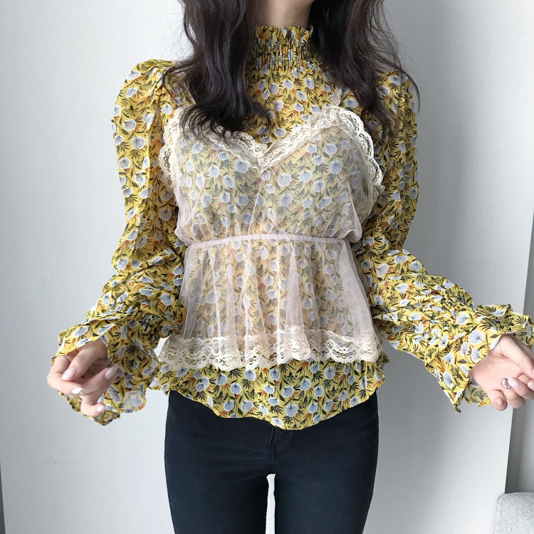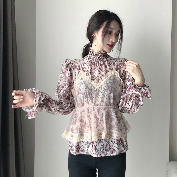 港風時尚套裝新款韓版chic雪紡衫上衣網紗內搭吊帶背心兩件套女潮