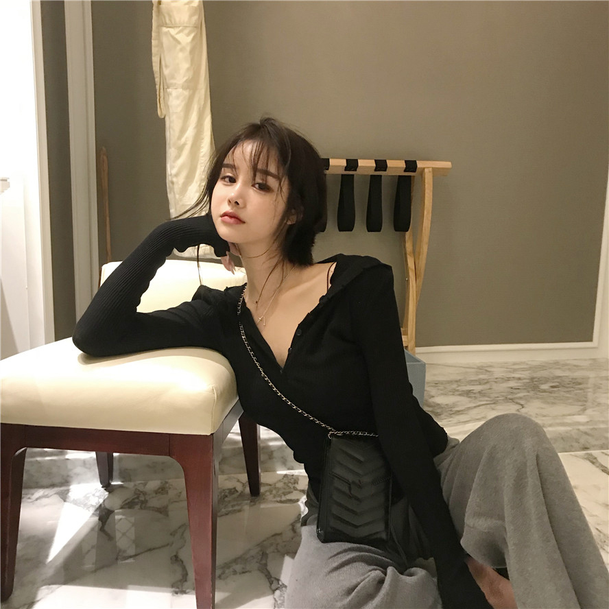 2018秋裝新款韓版網紅連帽打底針織緊身上衣chic顯瘦長袖毛衣女潮