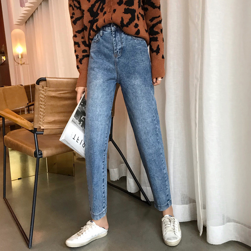 / pp home褲子女秋冬裝2018新款怪味少女哈倫褲高腰顯瘦九分牛仔褲