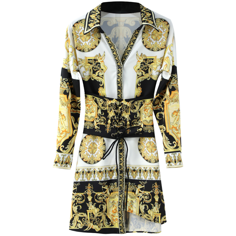 / 名媛氣質歐洲站中長款印花襯衫連衣裙女秋裝2018新款長袖心機裙子