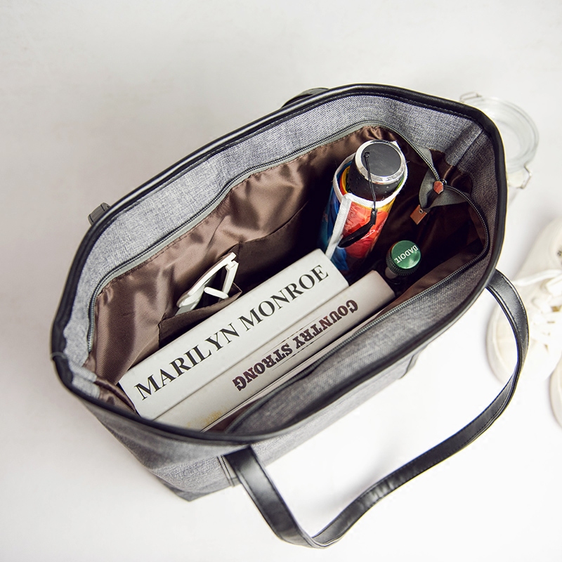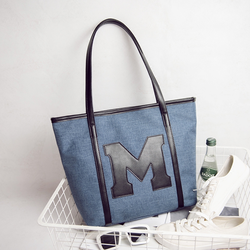 / 新款韓版麻紋帆布包女包時尚字母單肩大包休閑手提包電腦包潮