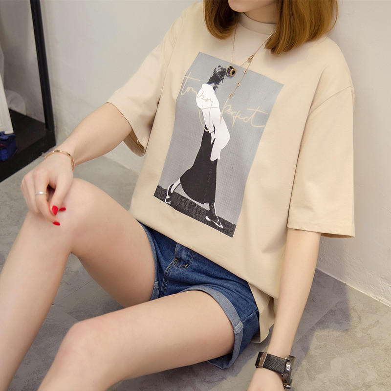 短袖t恤女白色上衣寬松打底衫女夏裝韓版印花個性小衫新款潮