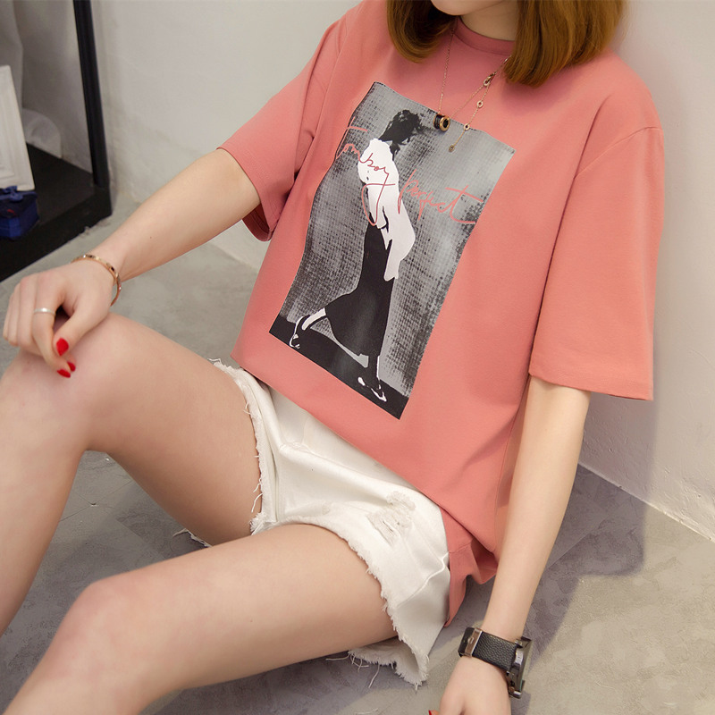 / 短袖t恤女白色上衣寬松打底衫女夏裝韓版印花個性小衫新款潮