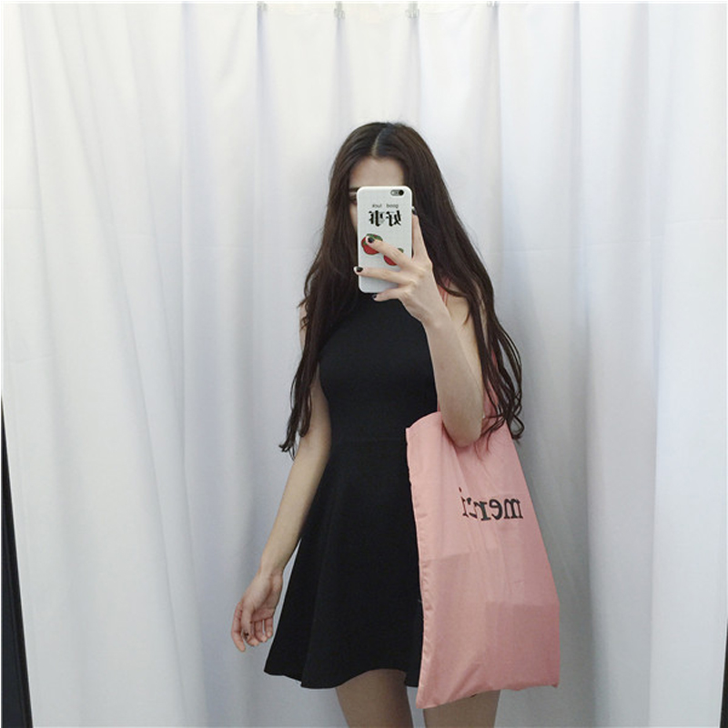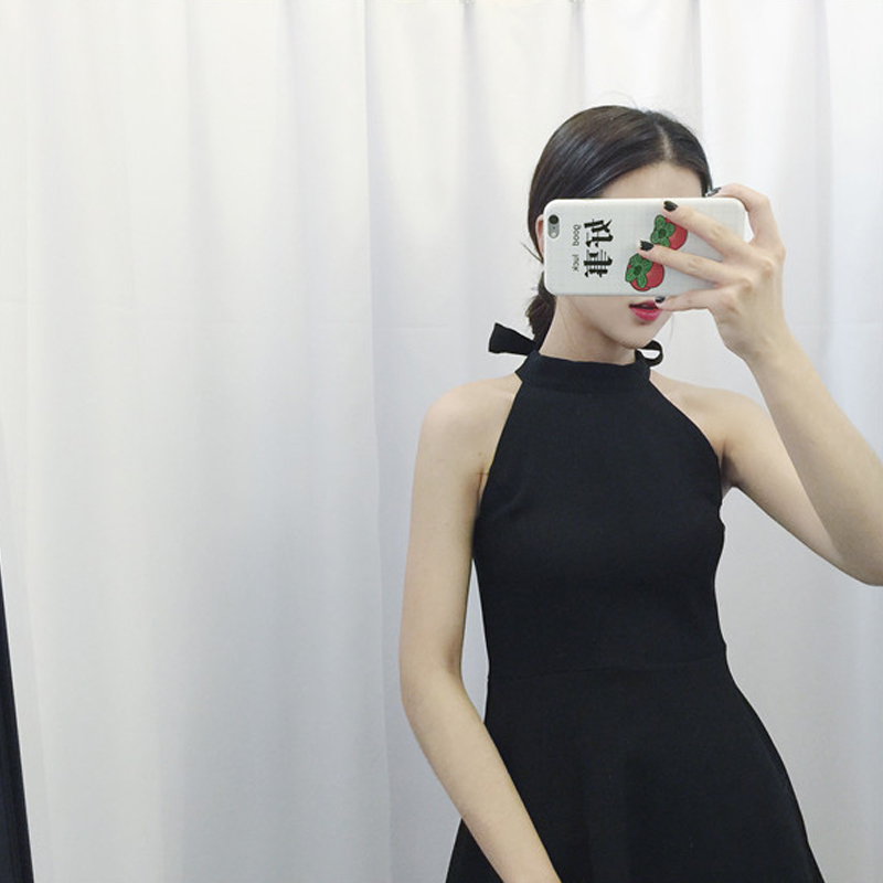 / 晚禮服掛脖削肩連衣裙無袖夏季韓版女裝氣質修身黑色顯瘦裙子學生